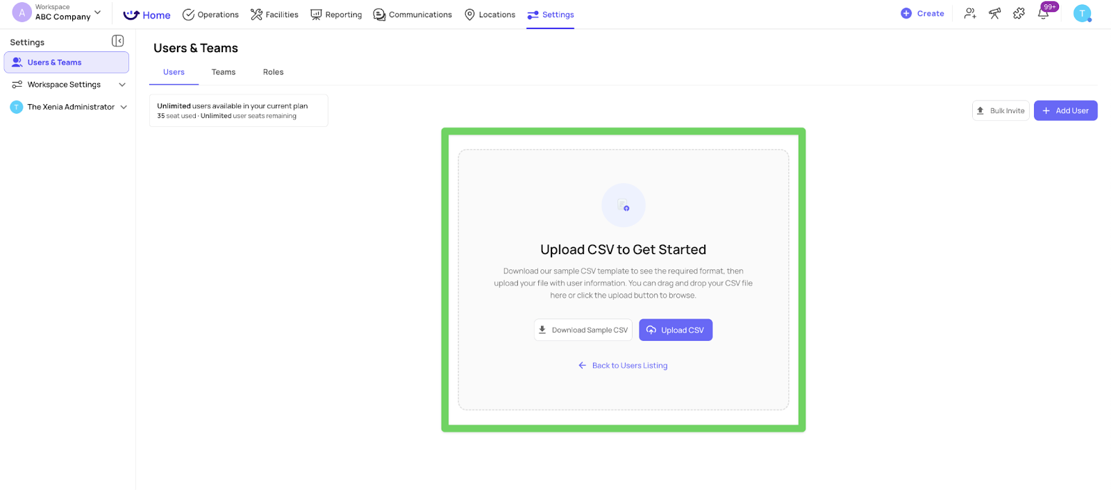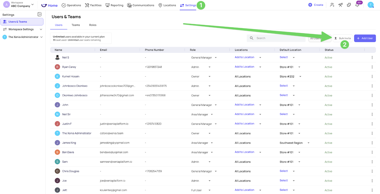 Bulk user invites allow you to quickly add multiple users to Xenia at once using a CSV file. This is especially helpful when onboarding new teams or launching a new location.