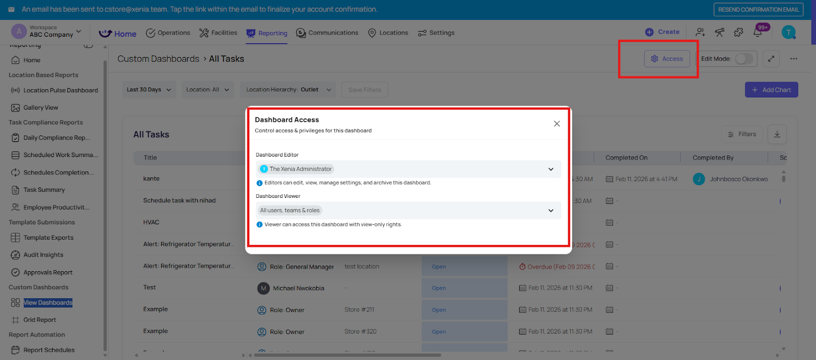 Custom dashboards in Xenia allow you to visualise operational data, track key metrics, and manage performance across teams and locations. This guide walks you through creating a dashboard, adding widgets, and sharing it with your team.