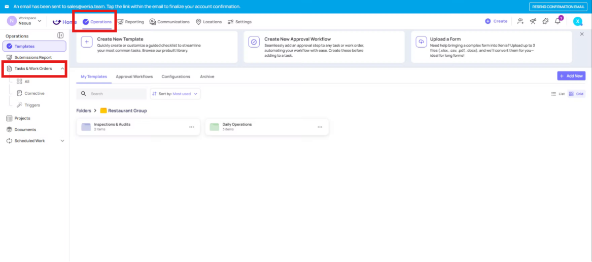 Navigate to the Operations tab, and under the Operations tab on the left-hand side, you will see Tasks and Work Orders.