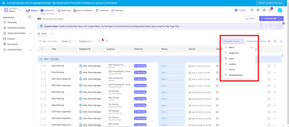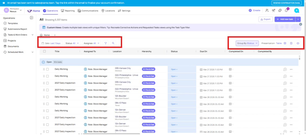 In this article, we will be walking through how to search for tasks and work orders in Xenia and how to leverage the platform's filtering capabilities to surface the information most relevant to you. These tools are essential for maintaining visibility across your operations, whether you're managing a single location or overseeing multiple sites. To begin,