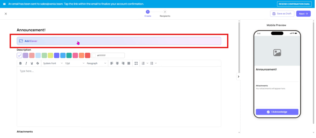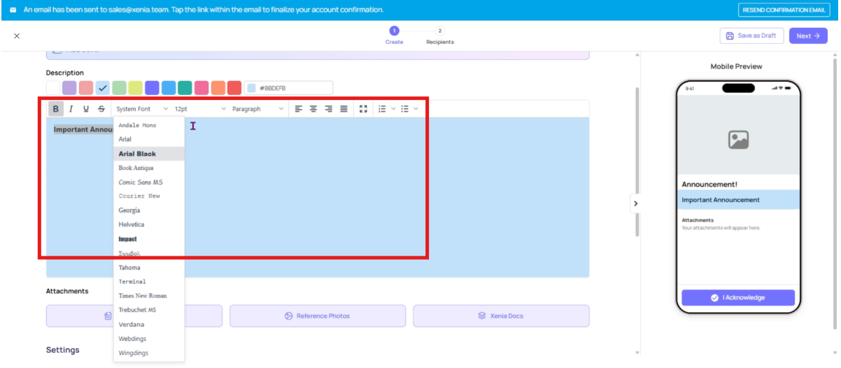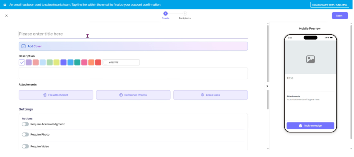 This means your announcement isn’t just text—it can be a full resource hub. You can attach files, reference photos, or even link to pre-built Xenia documentation. Users can then access everything they need directly from the announcement, making it both informative and actionable.