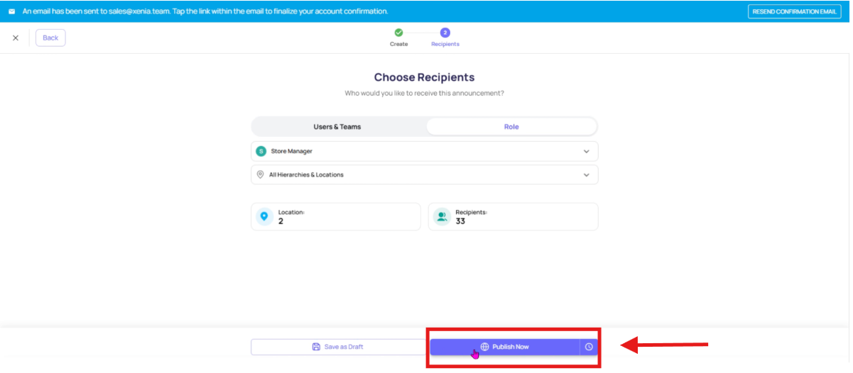 Once everything is set up, you can publish the announcement. This makes it live and sends it to all the selected recipients you configured earlier.