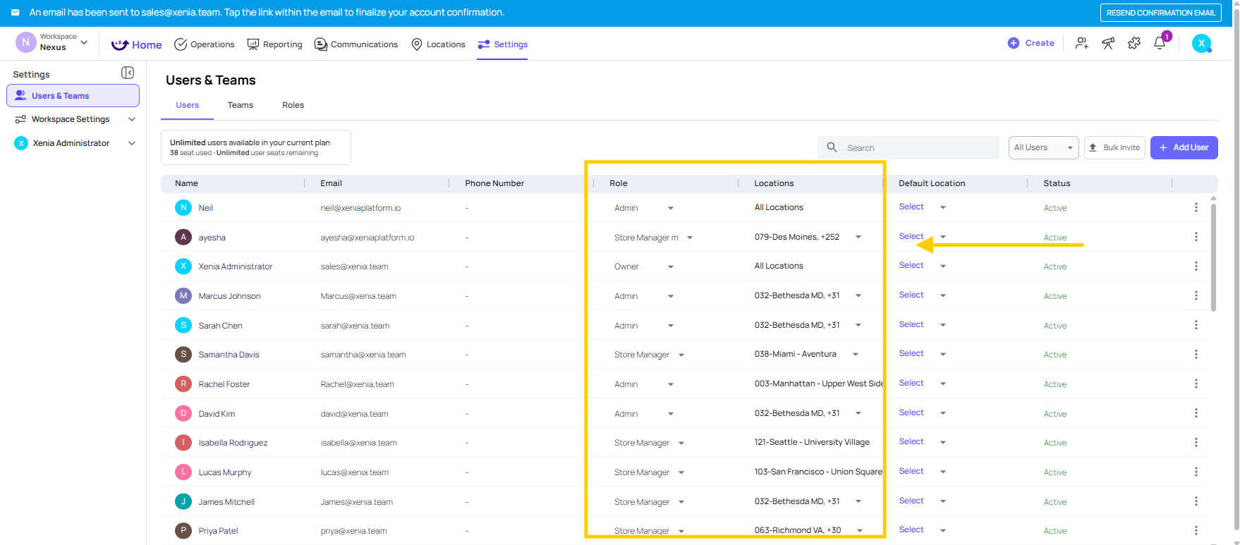 In Xenia, every user needs a unique email address. You cannot reuse the same email for multiple accounts. So the question is, do you create accounts tied to individual people or accounts tied to role? For your management team, district managers, store managers, supervisors, we recommend individual accounts. This gives you a full audit trail and performance tracking per person.