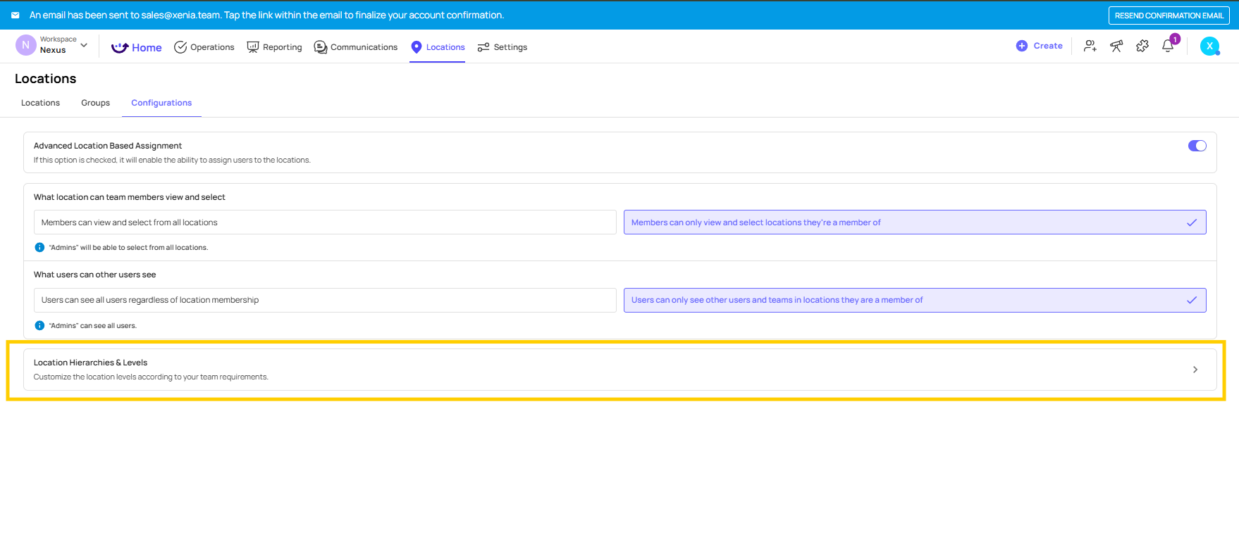The first thing to do is customise your hierarchy labels. Go to the Locations tab and click Configurations.