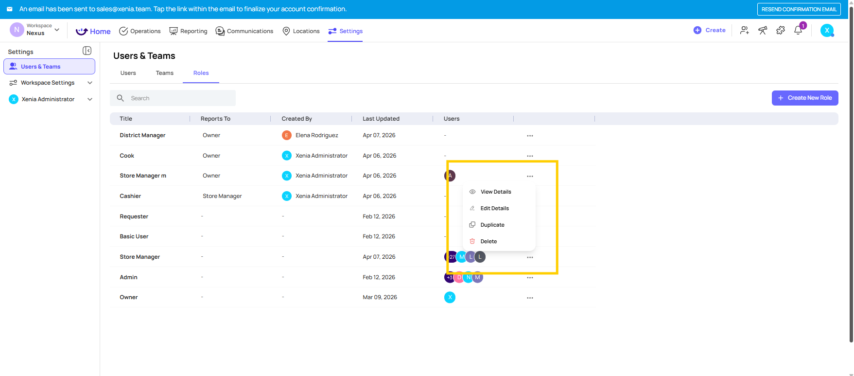 Please note that any modifications made to a role will be immediately reflected for all users assigned to that role. Therefore, it is essential to proceed with deliberate consideration. It is also important to remember that the "owner" and "admin" roles are protected and cannot be modified. Custom roles, however, can be adjusted as needed. These principles form the basis of role management within Xenia.