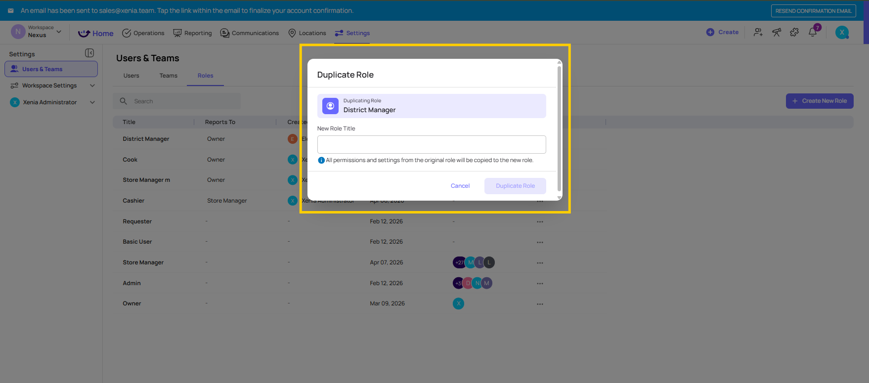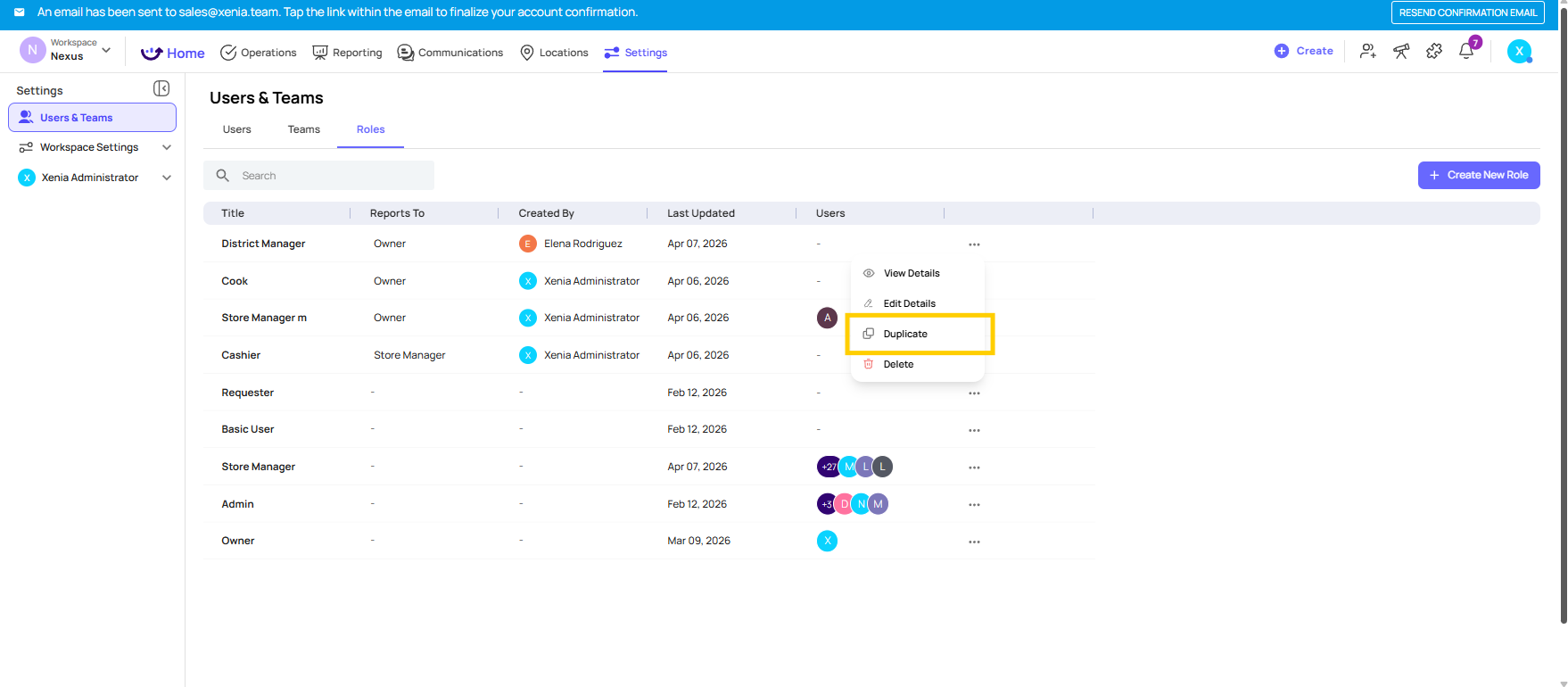 Important: Duplicating a role copies the permission configuration only. It does not copy users. You'll still need to assign users to the new role after creating it.