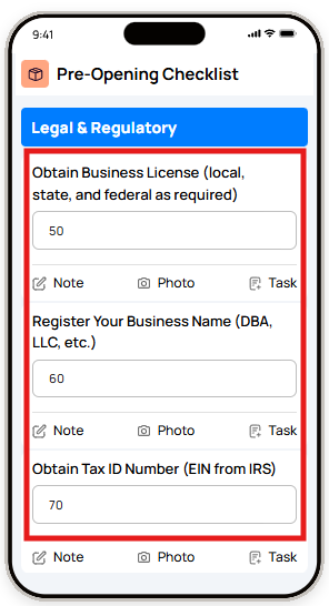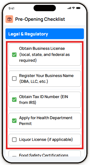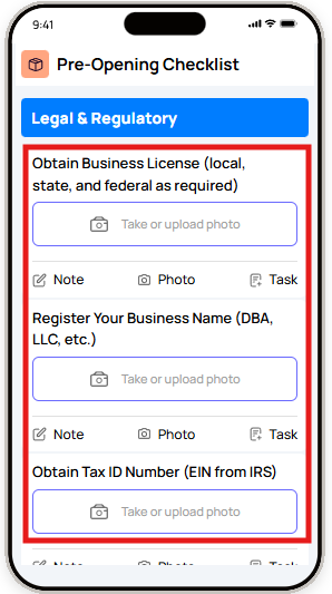 - Opening & closing checklists