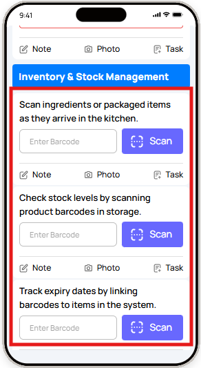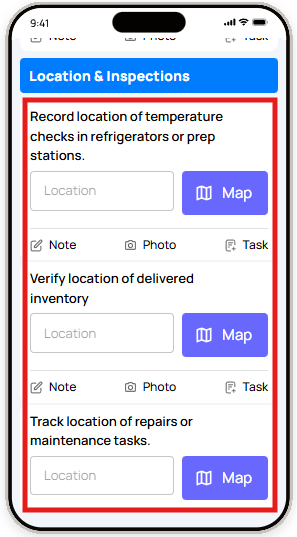 | Take Photo | Takes a live camera photo | Visual proof of work done |