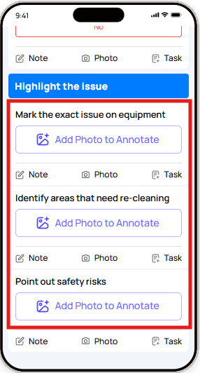 | Photo Annotation | Takes + marks up a photo | Damage documentation, defect location |